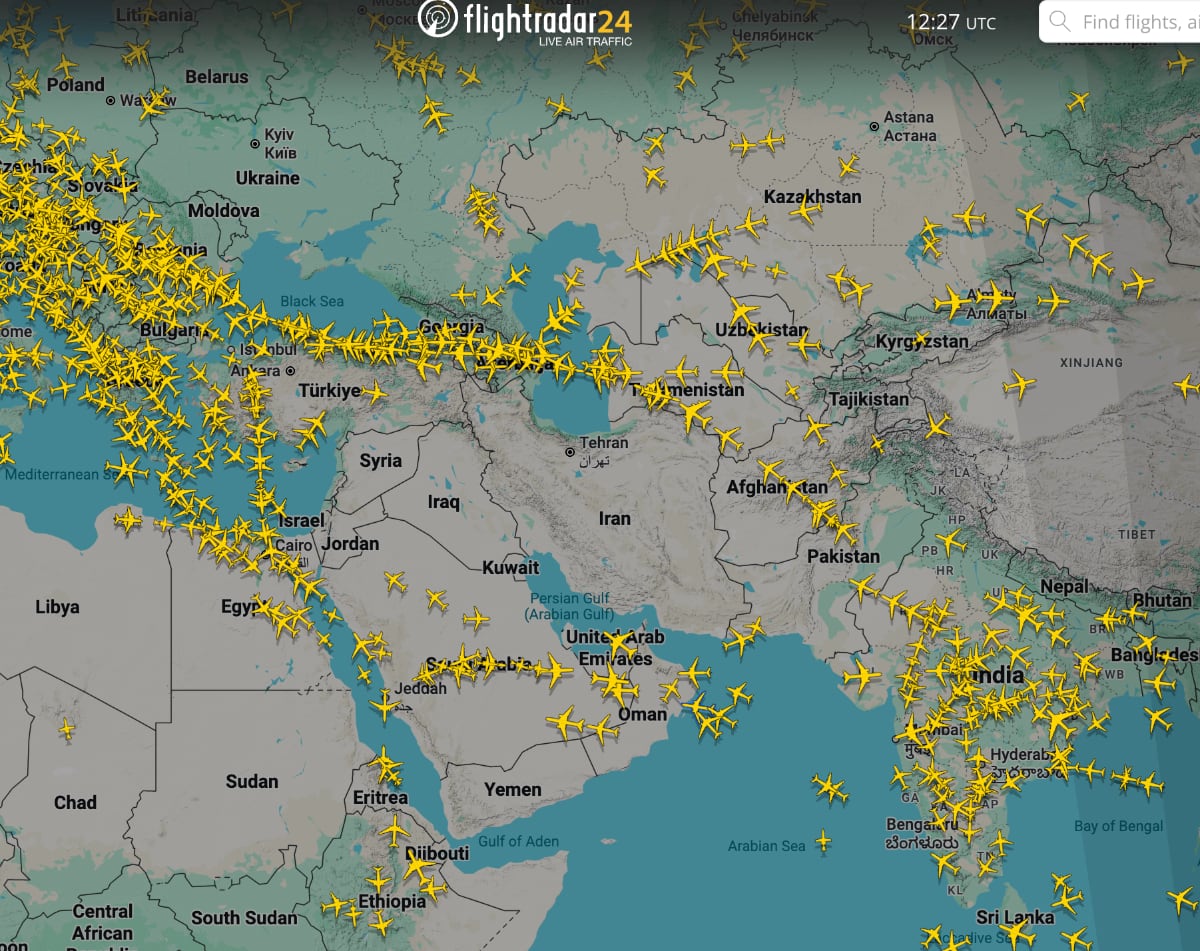 As you can see the space above Syria, Iraq, Kuwait, Iran, Israel and Jordan is pretty much empty.